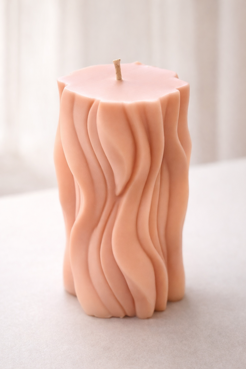 Die Kerze Calista von Emmys Kerzen begeistert mit ihrer modernen, fließenden Form und ihrem stilvollen, ruhigen Design. Die weichen Wellenstrukturen verleihen der Kerze eine besondere Eleganz und machen sie zu einem dekorativen Blickfang in jedem Zuhause.