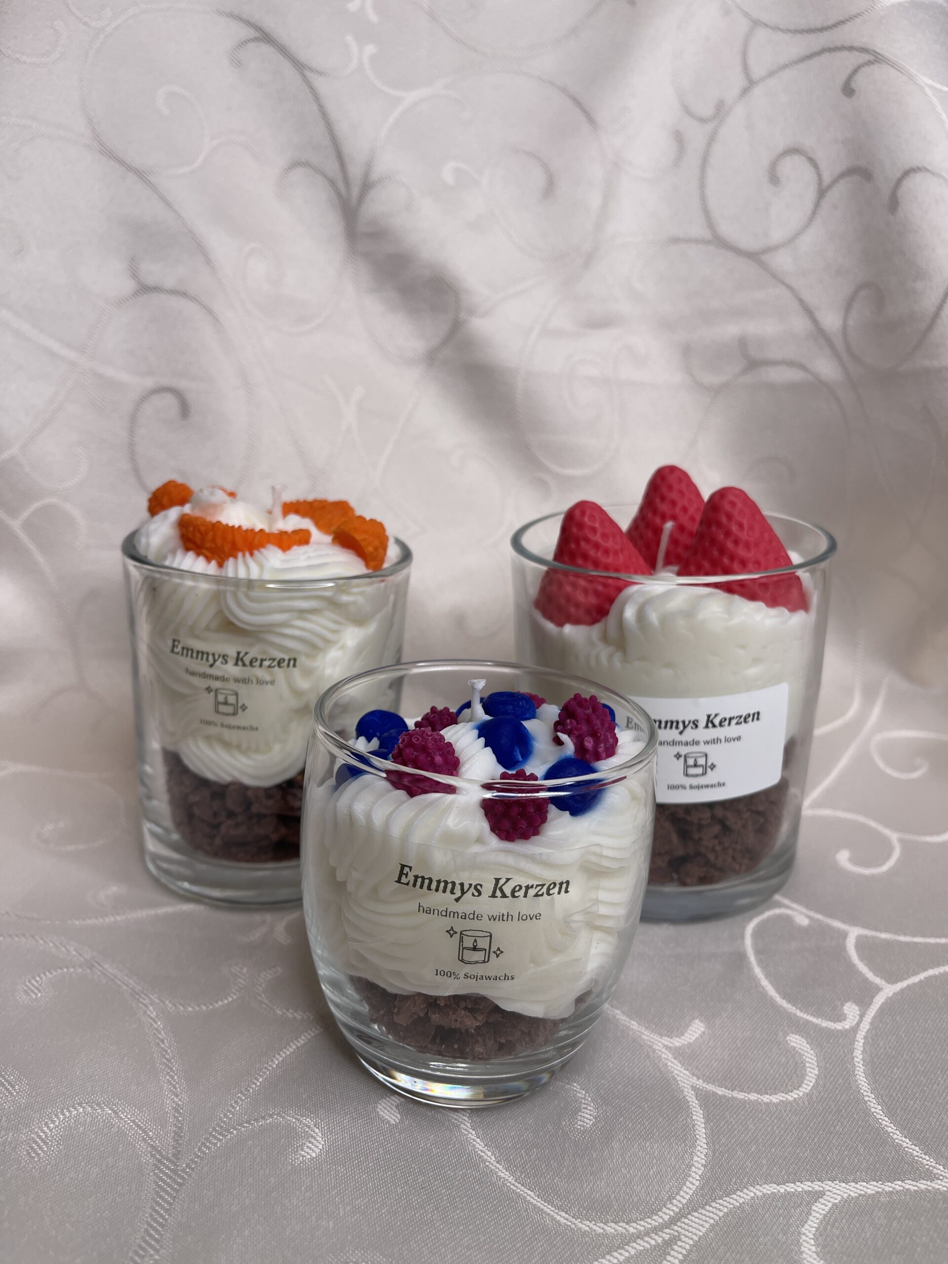 Fruchtig, frisch und wunderschön – diese handgemachte fruchtige Dessertkerze in drei verschiedenen Variationen und Größen bringt Farbe und Sommerfeeling in dein Zuhause! Die Früchte aus Wachs sitzen auf einer cremig weißen “Sahne”-Schicht und sehen täuschend echt aus – ein echter Hingucker für alle, die außergewöhnliche Kerzen lieben.