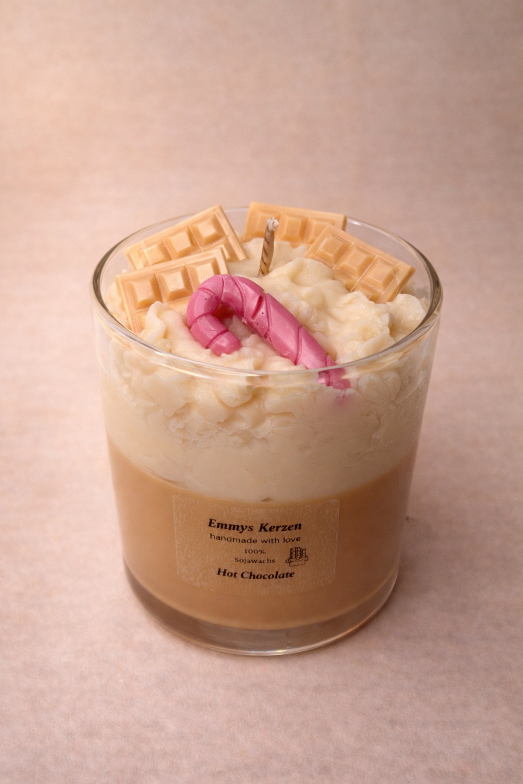 Die Hot Chocolate Duftkerze von Emmys Kerzen vereint gemütliches Design mit einem unwiderstehlich süßen Schokoladenduft. Optisch erinnert sie an eine frisch zubereitete heiße Schokolade mit Sahnehaube und Schokostückchen – ein absoluter Hingucker und gleichzeitig ein Wohlfühl-Duft für dein Zuhause.