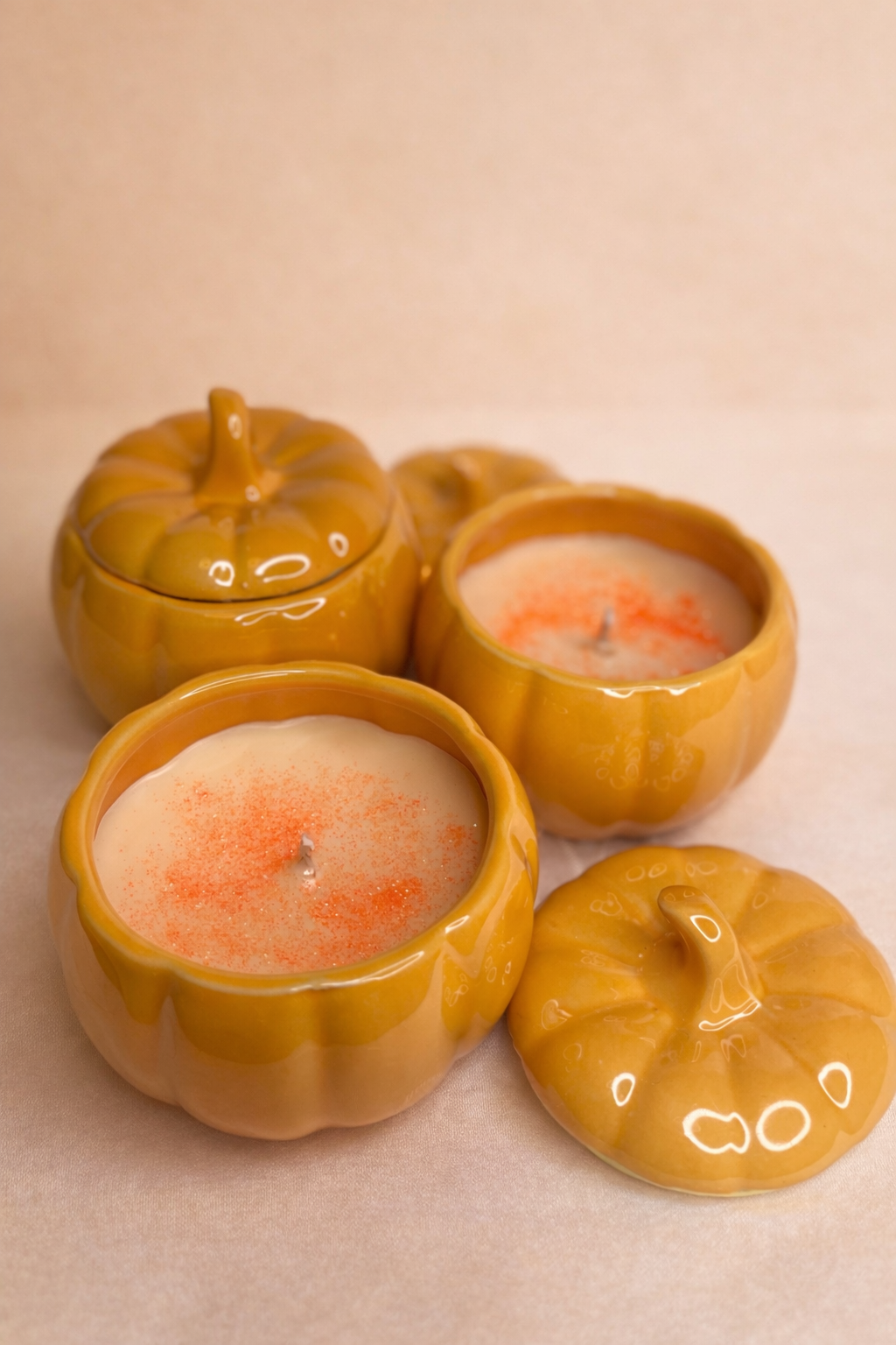 Der Duft „Glazed Apple & Oak Wood“ verbindet fruchtige Süße, warme Holznote und feine Gewürzaromen. Er erinnert an frisch karamellisierten Apfel, warme Eichenholzdüfte und den Zauber eines goldenen Herbsttages. Kleine orangefarbene Glitzerpartikel verleihen der Kerze einen zusätzlichen herbstlichen Akzent.