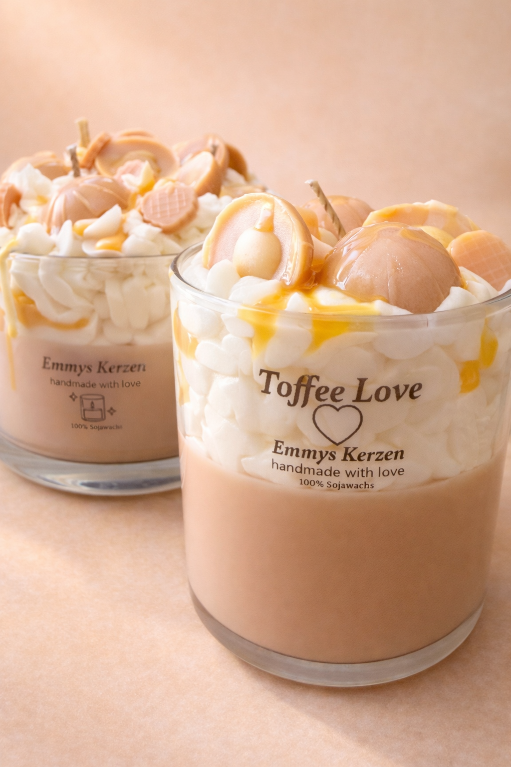 Die Kerze Toffee Love von Emmys Kerzen ist eine besondere handgemachte Sojawachs-Kerze, die durch ihr einzigartiges Dessert-Design im Toffee-Look begeistert. Mit viel Liebe zum Detail wird jede Kerze sorgfältig gegossen und dekoriert.