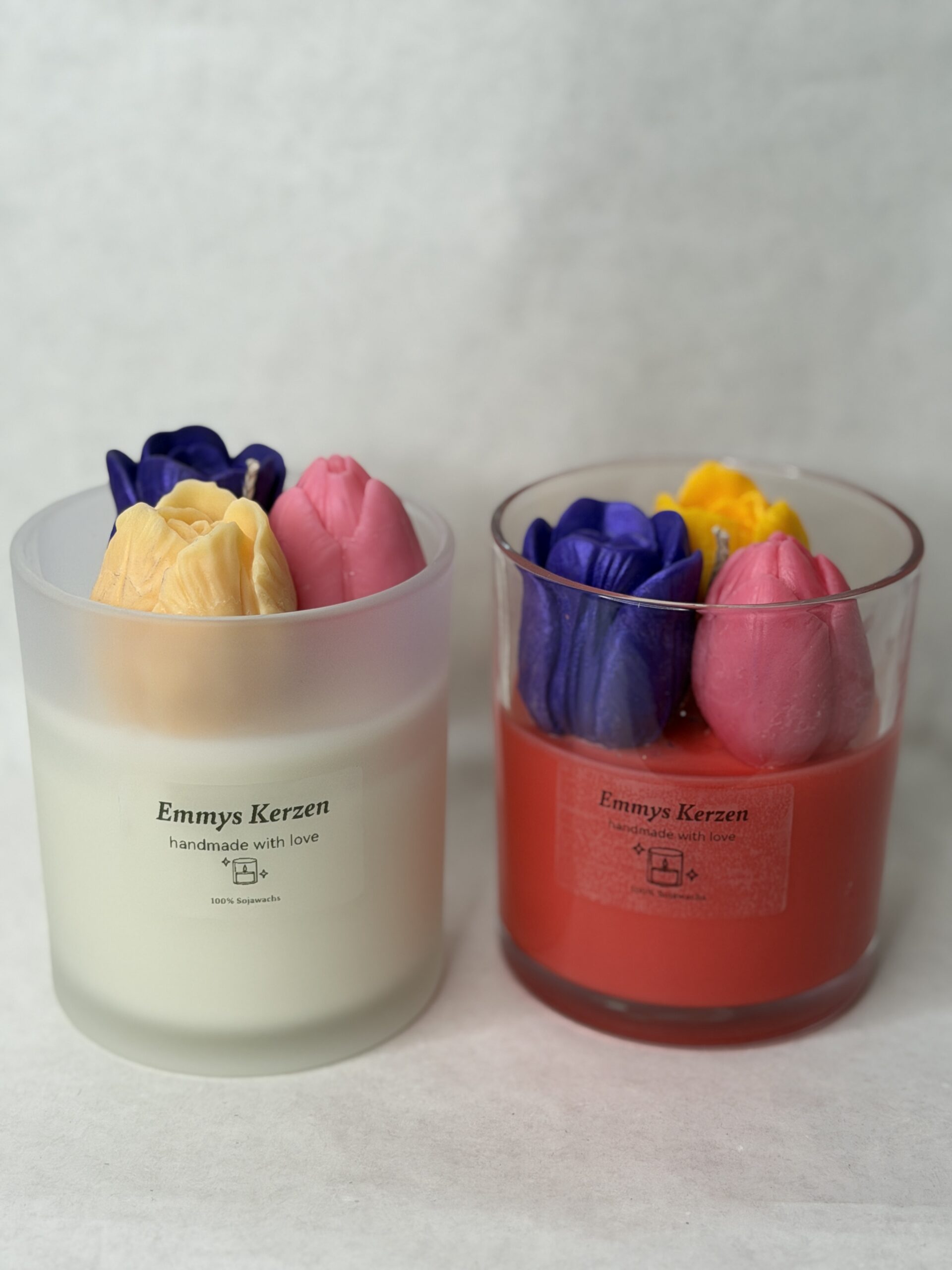 🌸 Tulpentrio im Glas Duftkerze – Handgemachte Blumenduftkerze 🌸