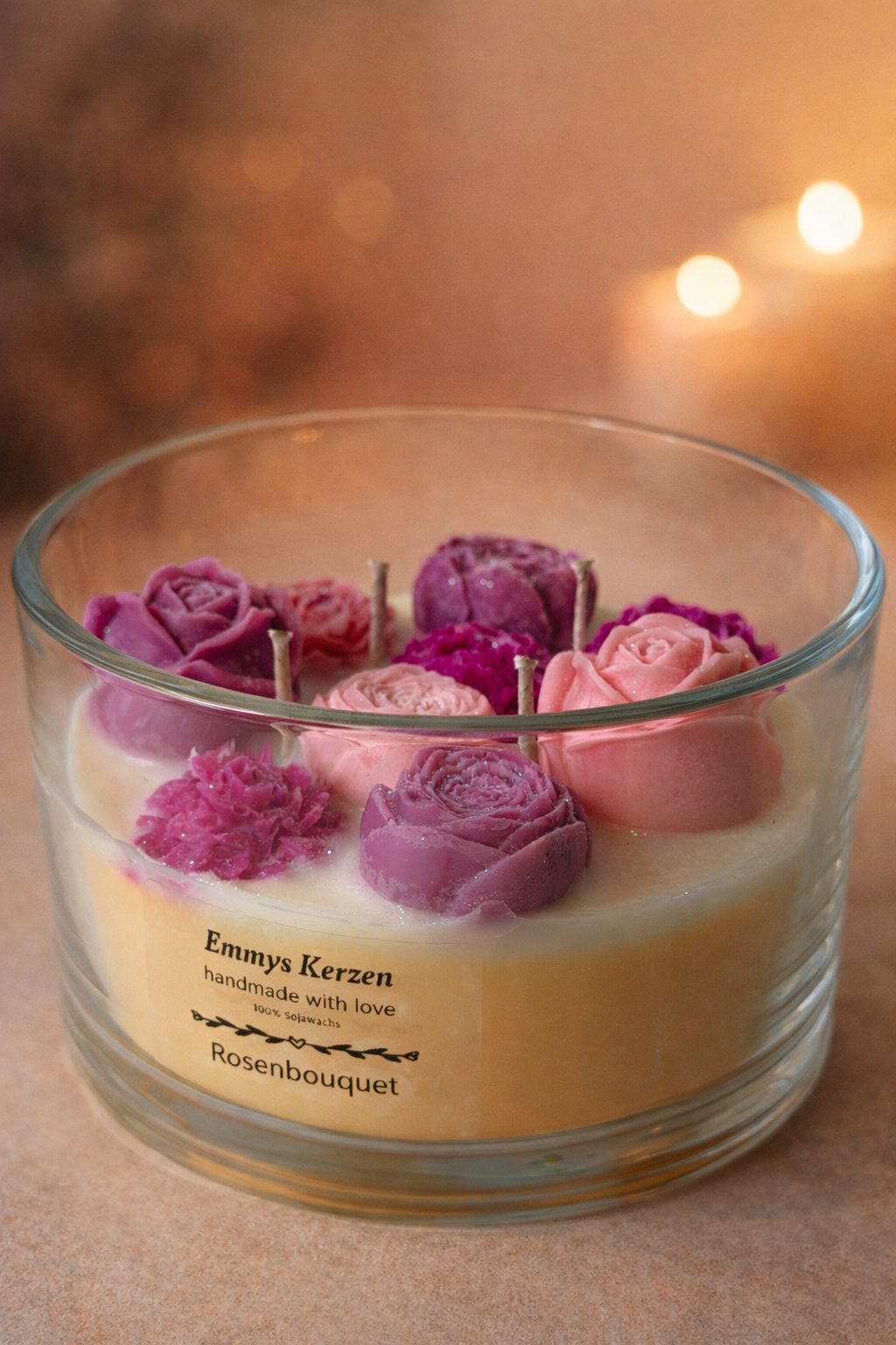 Mit Rosenbouquet schenkst du Rosen, die länger halten als jeder Blumenstrauß. Diese besondere Kerze sagt „Ich liebe dich“ – auf ihre ganz eigene, einzigartige Art.