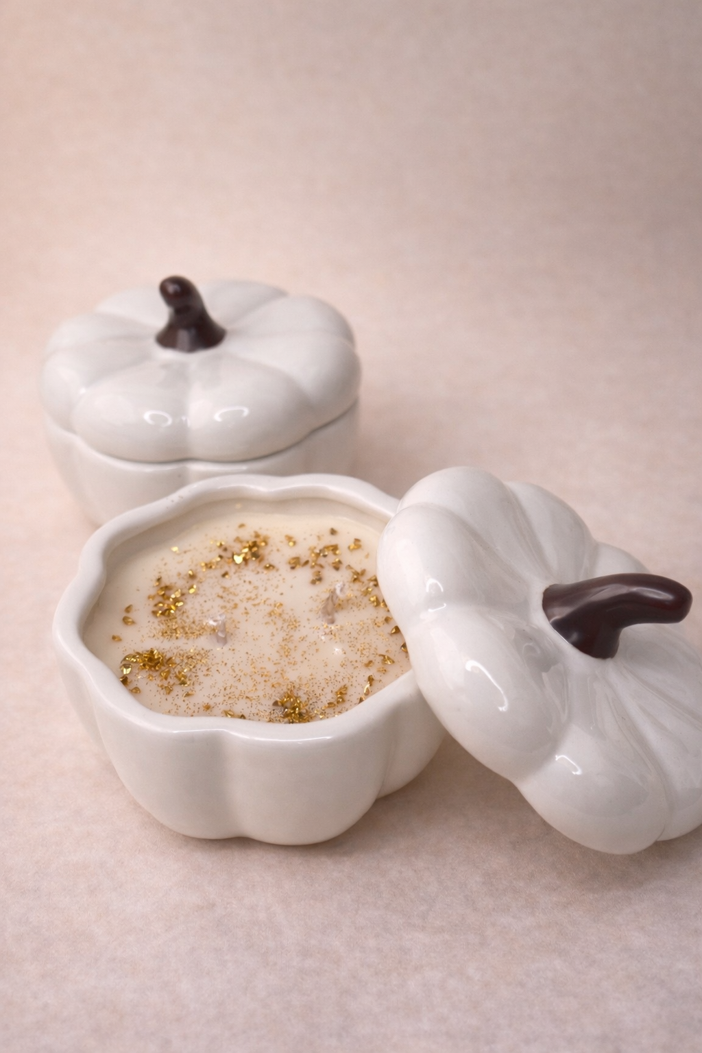 White Pumpkin Duftkerze – herbstlicher Duftzauber im Keramik-Kürbis
